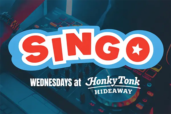 EVERY Wednesday at Honky Tonk Hideaway, SINGO Music Bingo combines your favorite songs with the fun of bingo for a high-energy game everyone can enjoy! Match the music to your card and compete for large and amazing prizes.