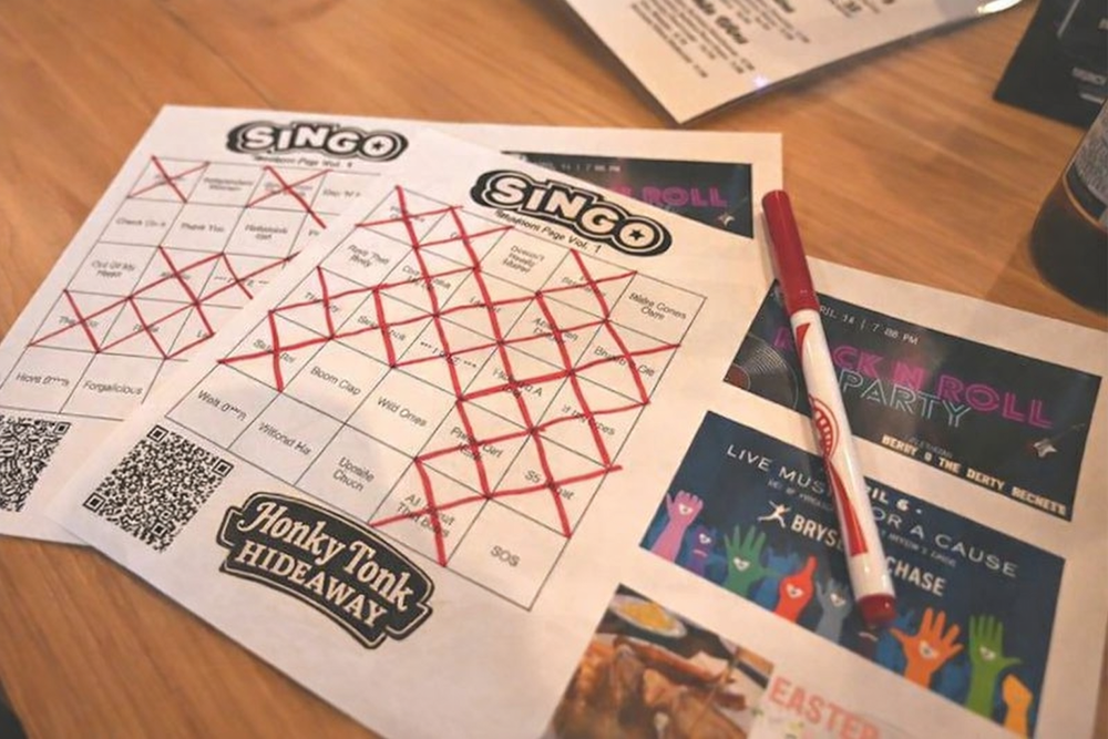 Typically Singo runs with each person playing their own card, but groups of friends or coworkers often team up on a card and play together just for fun. At Honky Tonk Hideaway, you can position it as easy for individuals, couples, and groups, which is nice because it makes the event feel low-pressure instead of “bingo but with rules and paperwork,” which would be a brutal brand direction.